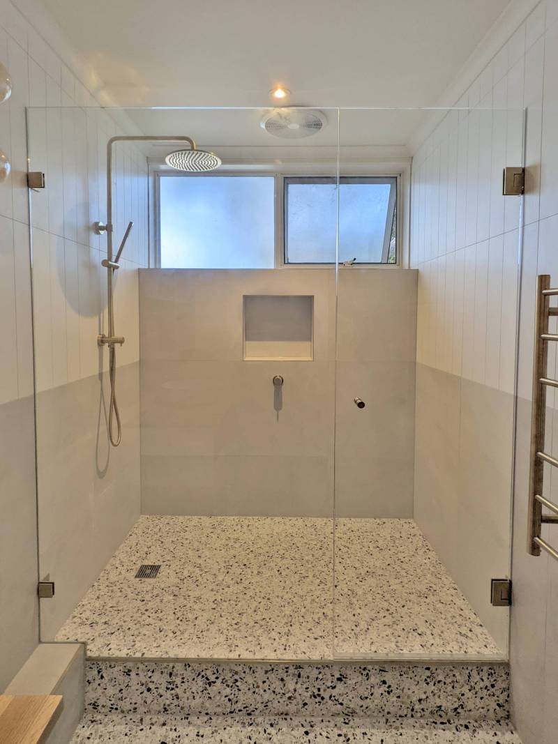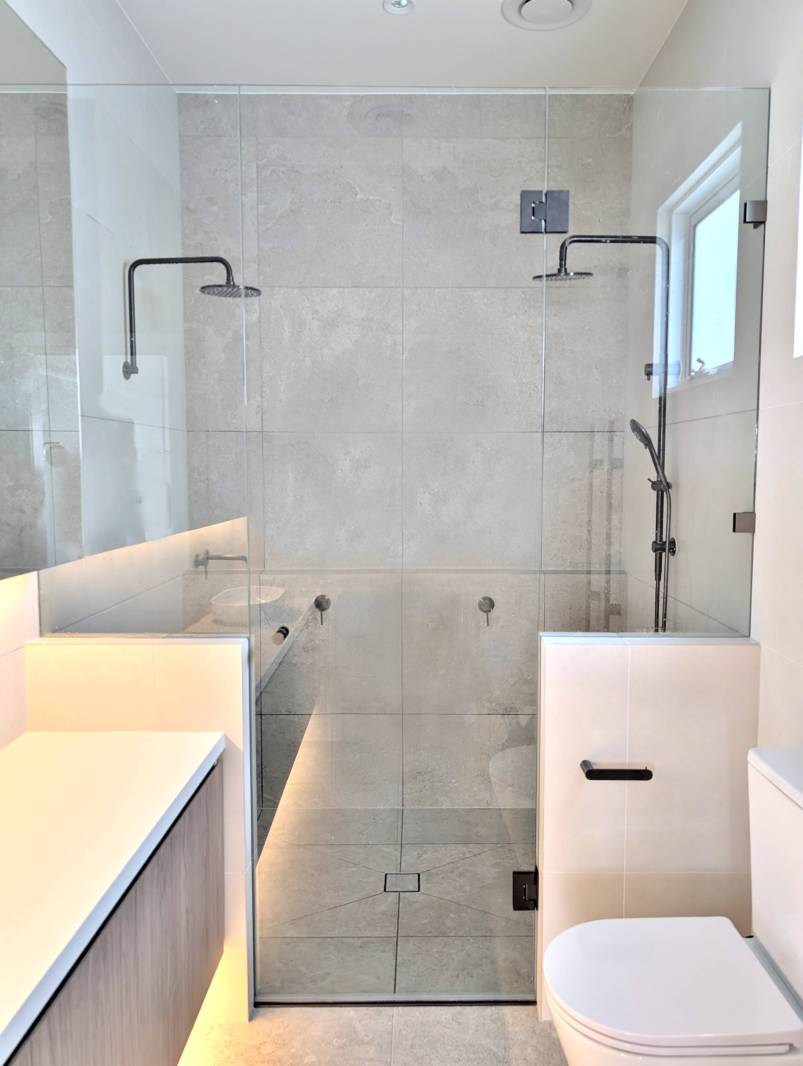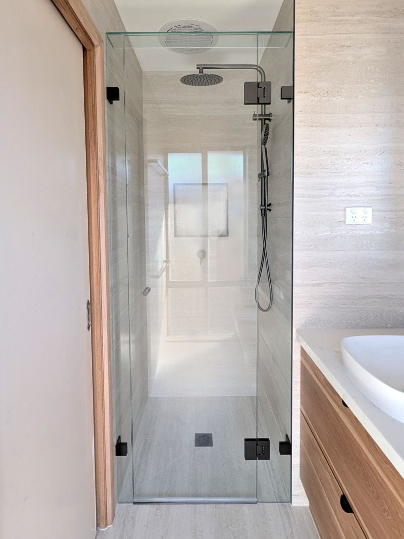 Frameles shower screens that combine clean design with practical access.