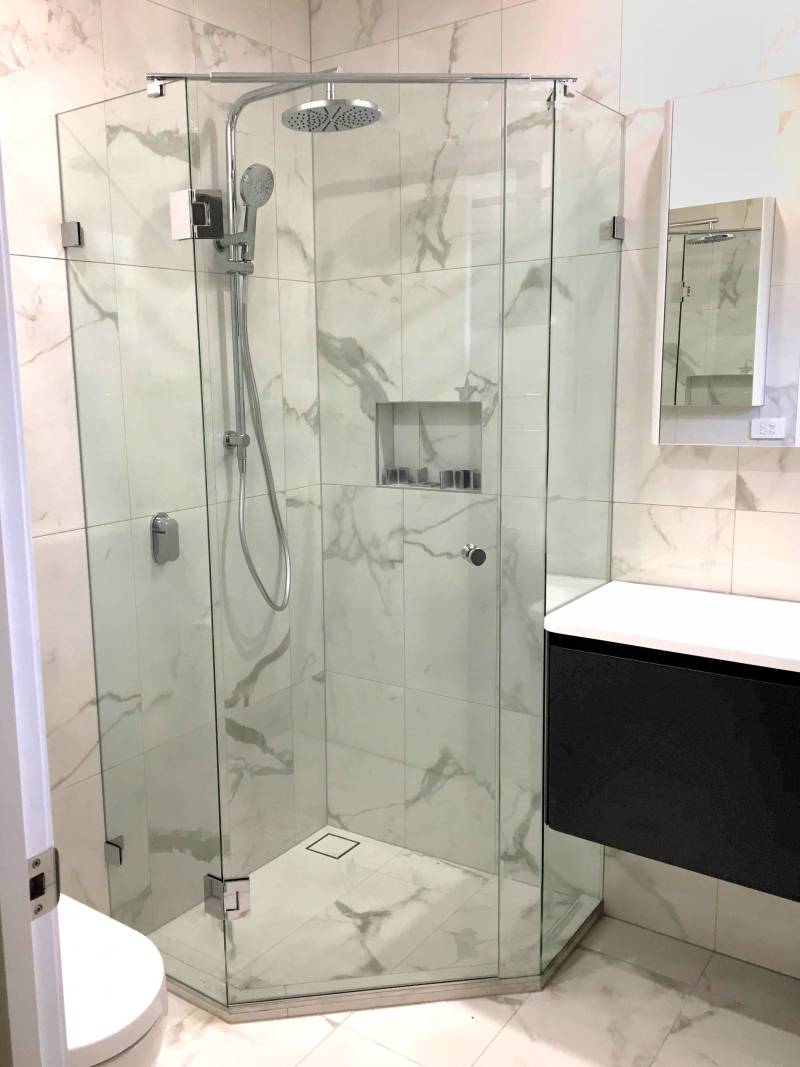 Diamond-shaped shower screens — also known as 135-degree or quadrant shower screens — are designed for bathrooms where the shower sits in a corner and space is limited.